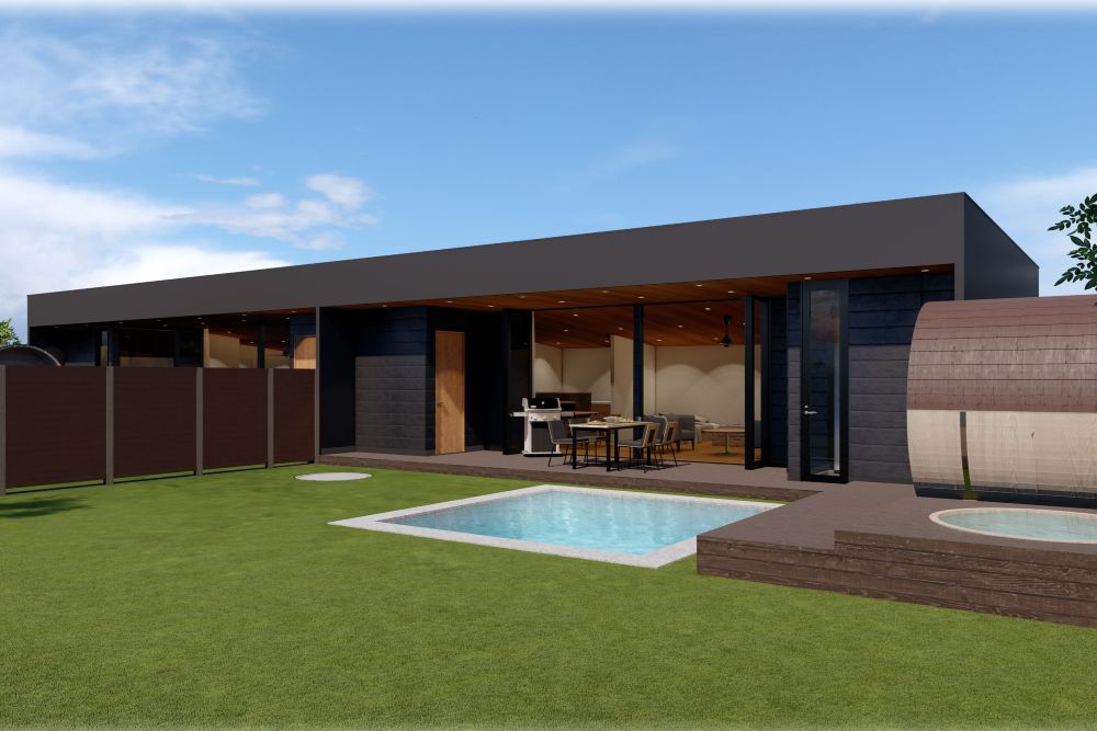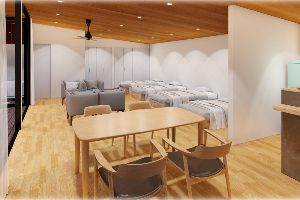 これは、一般的な海辺のコテージで好まれる白基調のデザインが、過去のデータから夏季以外の集客に苦戦する傾向があることを踏まえた戦略的な選択です。通年での安定した集客と高い稼働率を実現するため、どの季節にも調和し、洗練された印象を与えるデザインを採用しています。