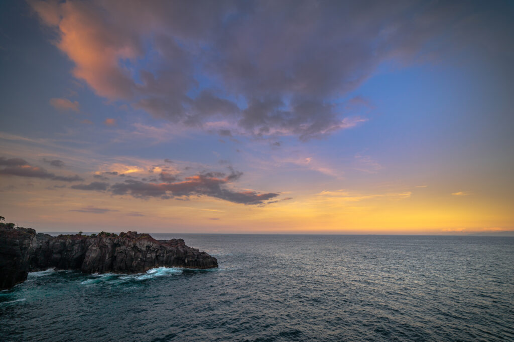 太平洋の雄大な眺望が広がり、城ヶ崎海岸まで足を伸ばせば、相模湾と目前に大島の雄大な美しさを間近に体感できます。