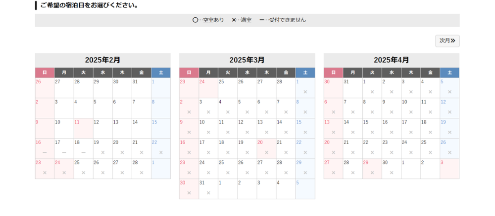 ご覧のように、3ヶ月先まで予約の取れない人気施設です。実際の所は、公式サイトHPをクリックしてご確認ください。