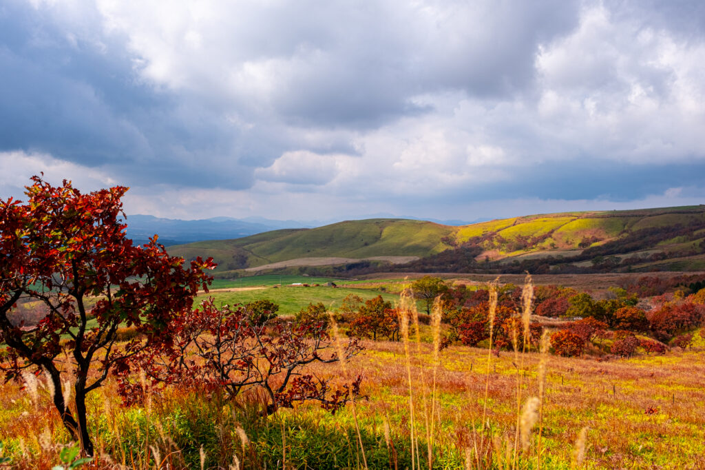 湯布院の温泉街から車で約15分と適度な距離にあり、その賑わいから一線を画した手つかずの豊かな自然と静寂に包まれた環境が、塚原地区の大きな特徴です。なだらかな丘陵地には牧草地が広がり、四季折々の野草が咲き誇る圧倒的で牧歌的な景観が、訪れる人々の心を深く癒します。