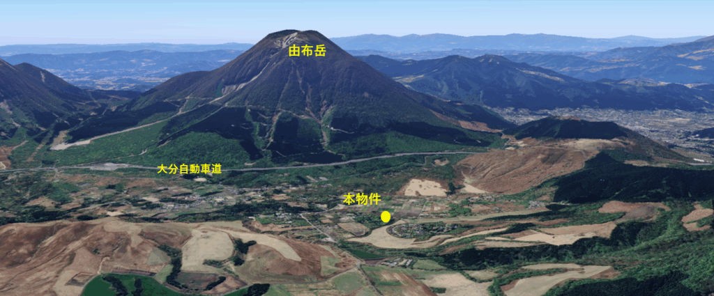 敷地の南側は、視線を遮るものがなく、雄大な由布岳の姿が目前に聳え立ちます。 これは、本物件が提供する最も象徴的な価値であり、各棟からこの息をのむような絶景を独占できることは、宿泊施設にとって揺るぎない競争優位性となります。