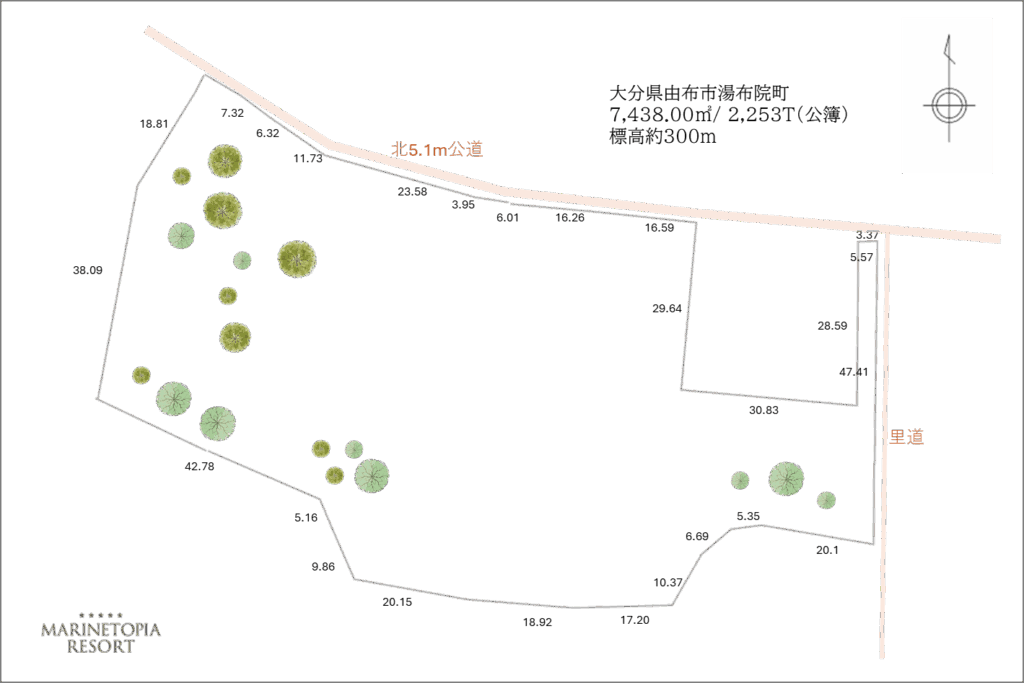 この特性は、開発計画において比類ない自由度を提供し、開発造成工事を極力抑え、理想とする施設配置やデザインを効率的に実現することを可能にします。敷地の北側を幅員5mの公道に約80m以上にわたり広々と接道する長方形の形状は、ゲストのアクセスだけでなく、資材搬入などの運営面においてもスムーズな動線と高い利便性を確保します。